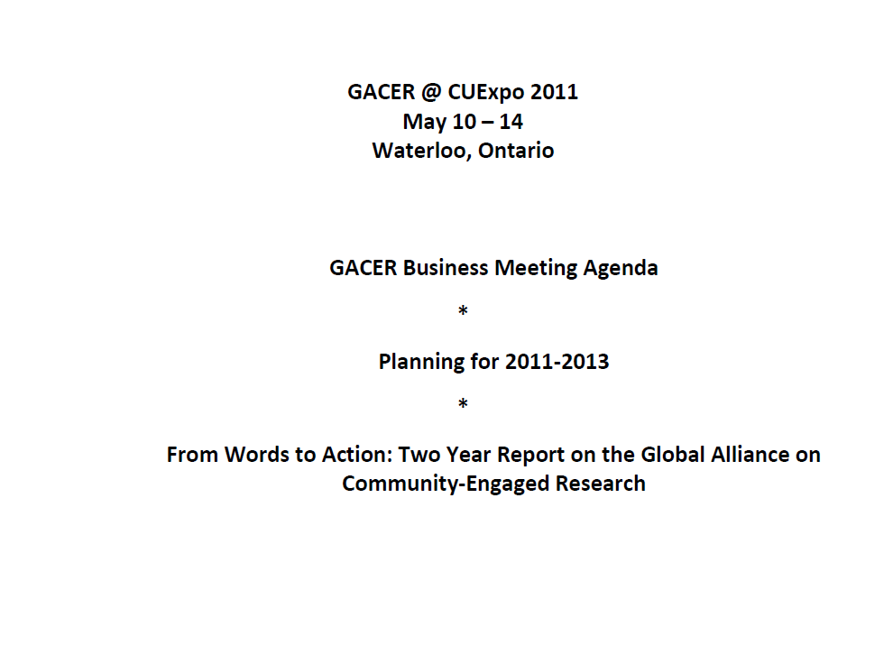 The Global Alliance on Community-Engaged Research (GACER) is an organization created by representatives of universities, networks, and civil society organizations.