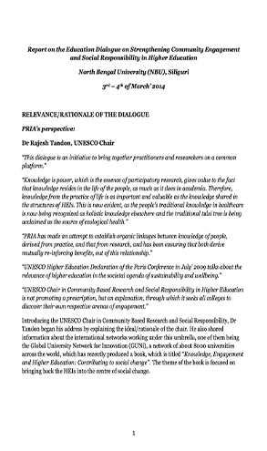 Report: UNESCO Chair in Community Based Research and Social Responsibility in Higher Education